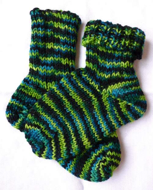 Aus dem Rest DIESER Socken habe ich Kindersöckchen in Größe 24 gestrickt.